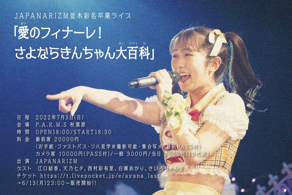 JAPANARIZM並木彩名卒業ライブ「愛のフィナーレ!さよならきんちゃん大百科」